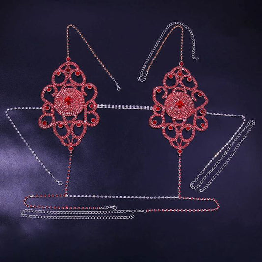 Stone fans Sexy Red Exotic Two Piece Set