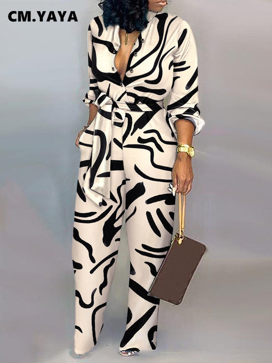 CM.YAYA Elegant Long Sleeve Sashes High Waist Jumpsuits